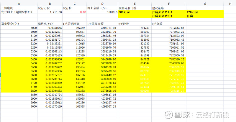 三协电机如果按照8.83元,1800万股发行量计算,初步结果如下: