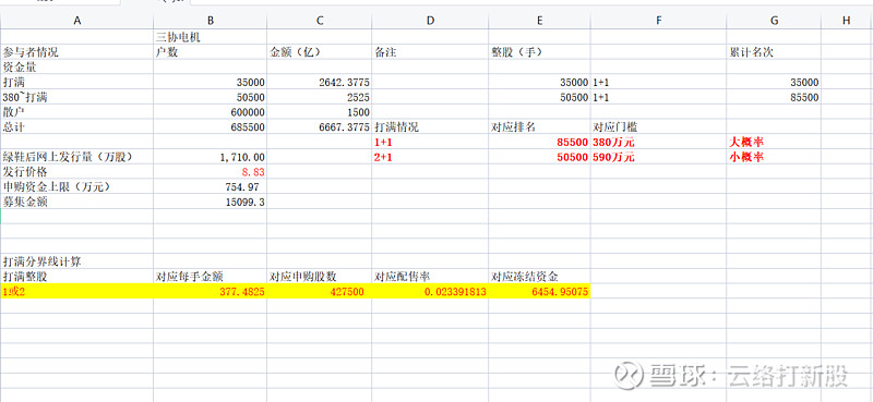 如果你的资金是750~560万元,只能一个账户申购,毕竟单一账户申购,无论如何都是2手,分户的话什么都没有了。如果可以的话,这一档其实最优解是600万元出头的样子。