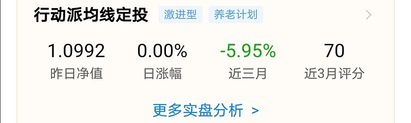 接着来看行动派均线定投实盘组合情况,昨日行动派均线定投组合净值为1.992,上个交易日涨跌幅为-0.37%,微跌。