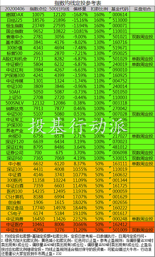 然后送上行动派整理的最新均线定投表,供小伙伴们参考。
