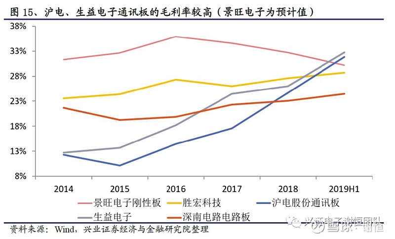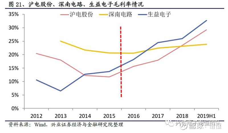 毛利率方面,2016年之前深南电路在20%左右,沪电股份和生益电子都不超过15%,今年上半年,生益电子、沪电股份、深南电路的毛利率分别提升至32.7%、29.2%、23.8%。