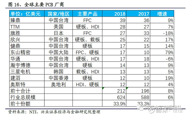 通信板的市场格局也比较分散,因为非高频、非高速多层通信板仍然占大部分,不过从前十大厂商增速明显快于行业增速可以看出,龙头集中度得到提升。随着未来5G基站、数据中心建设,高频、高速多层板需求更为旺盛,行业集中度有望持续提升。