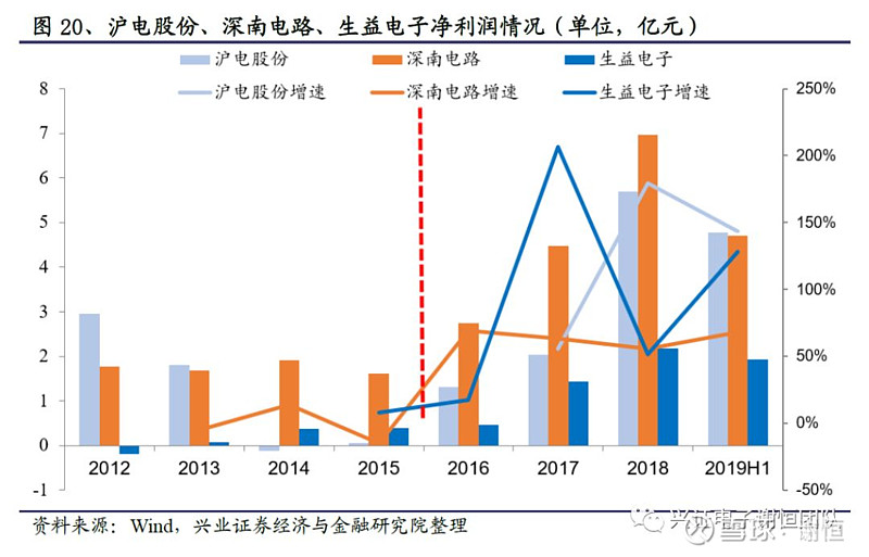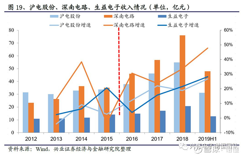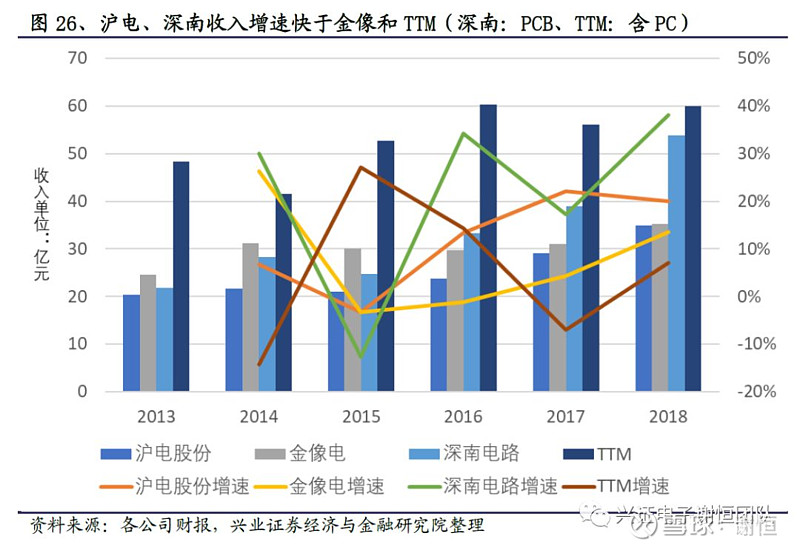 2016年开始,三家公司收入和利润都出现了明显的增长,2015-2018年深南电路、沪电股份、生益电子收入复合增速分别为29%、18%、13%,净利润复合增速分别为63%、356%、76%,并且在今年上半年继续保持高速增长。