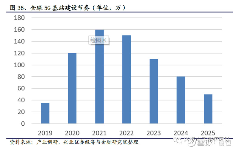 截至今年上半年,我国4G基站数目达到445个,占全球一半以上,预计全球5G基站数目在700万以上,参考4G基站建设的节奏,我们预计2021-2022年将是5G基站建设高峰期,预计每年新增基站数量超过140万个。