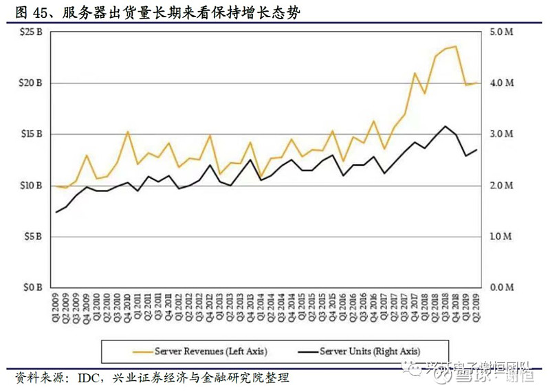 以服务器为例,作为数据中心资本开支最大的部分,与之密切关联。根据IDC数据,2018年全球X86服务器出货量1175万台,同比增长15.4%,成为过去几年增长最快的一年。今年Q1、Q2受资本开支回落影响,服务器出货量同比也有下滑。随着未来数据流量高速增长,数据中心资本开支恢复,服务器、交换机、路由器、存储器等ICT设备出货量将继续保持增长态势,拉动高速多层板的需求。