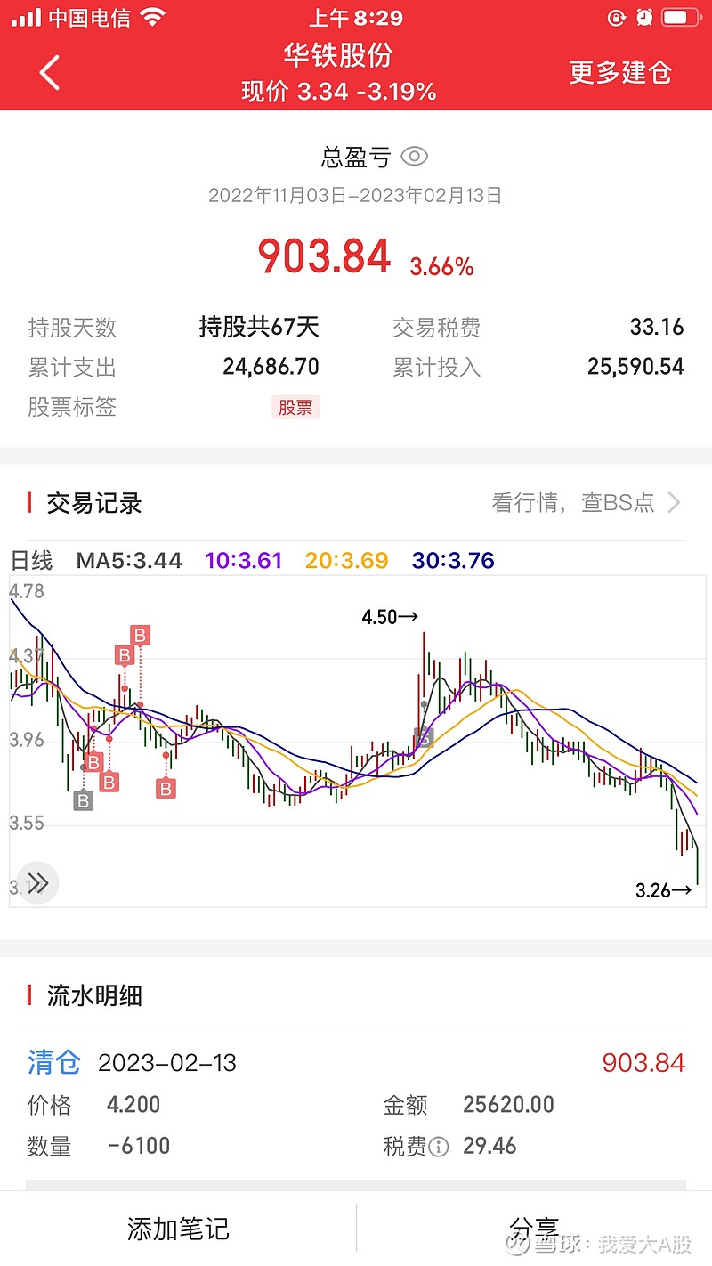 作为一个稳健的投资者,见错必纠,但是不可常错。华铁股份看似业绩可以,其实就是个皮包公司,在2月2月12日预亏12亿元,天那这得多大的坑于是呼我第二天一刀切了。