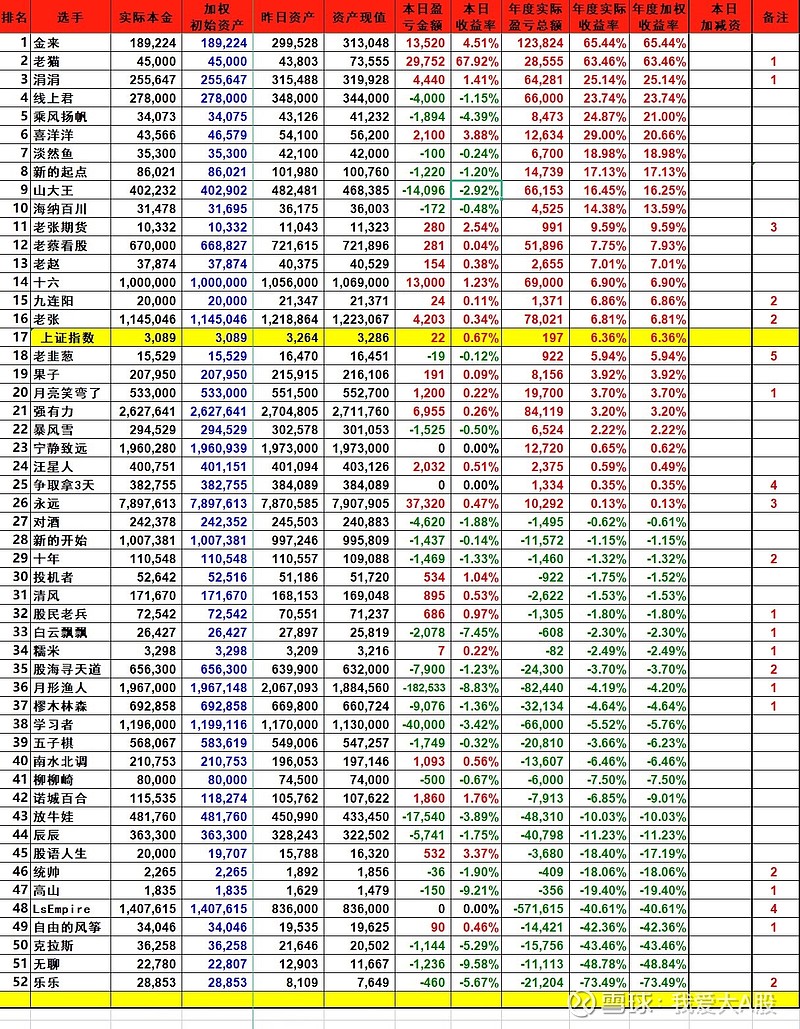 目前圈内的老友还是9名的、21及26名的比较长期稳定,T神及精灵二者铁的纪律更是步步高升。