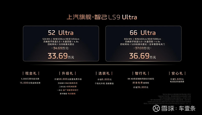 11月4日,智己LS9首发并开启预售。52 Ultra预售权益价33.69万元,66 Ultra预售权益价36.69万元。