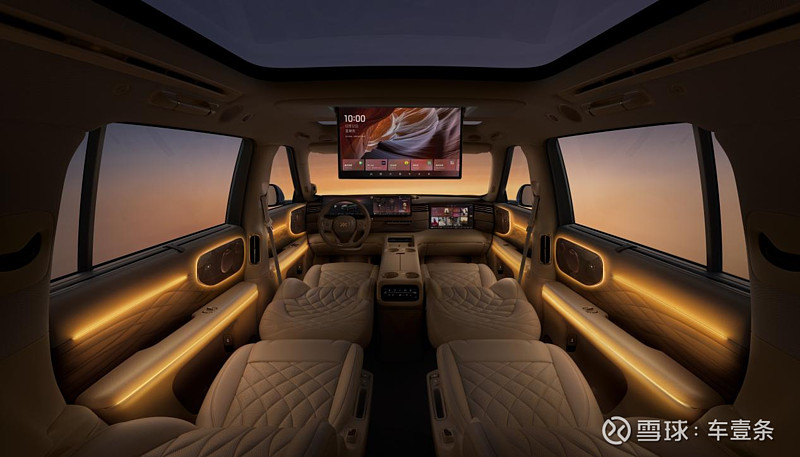 座舱方面则强调智能时代的“新奢华”。新车搭载B&O音响、4D机械按摩座椅与瞬净新风系统;“野奢户外套装”可实现户外淋浴,满足更多露营与出游场景;同时还搭载了21.5英寸4K二排娱乐屏与12.3L冰箱等配置。