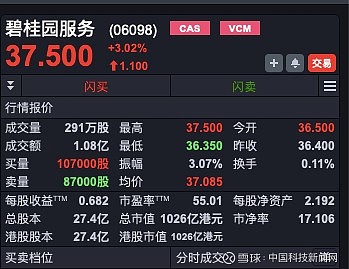 截至5月13日盘中,碧桂园服务每股股价报37.5港元,涨幅超过3%,市值达1026亿港元。