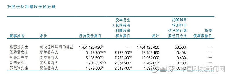 股价大涨最大的受益者自然是大股东。根据碧桂园服务2019年报显示,杨惠妍实益持有该公司14.51亿股股份,持股比例53.5%。杨惠妍也是碧桂园创始人杨国强的二女儿。