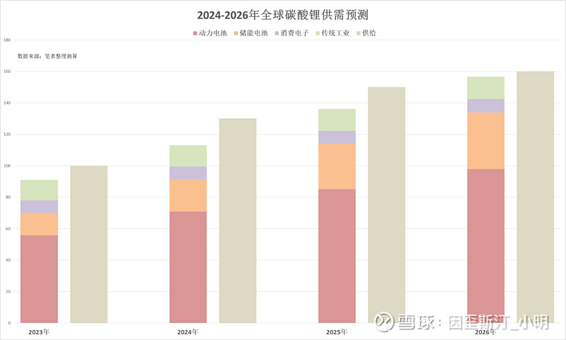 2025年假设全球新能源汽车增速20%,储能增速40%,对应全球碳酸锂需求量约为136万吨。不妨把2026年的数字也模糊的拍了,大约是157万吨。
