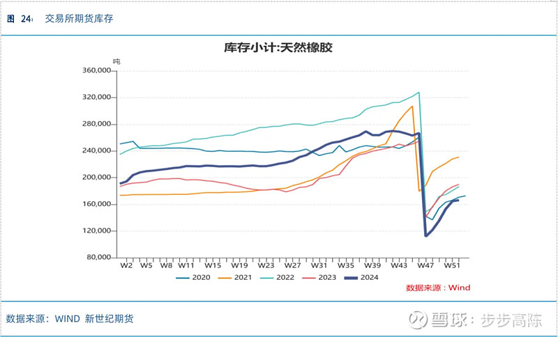 2024年初割胶生产进度略显滞后,曾有机构预测,全年减产难以避免,这成为年内橡胶逐波走高的一大助力。