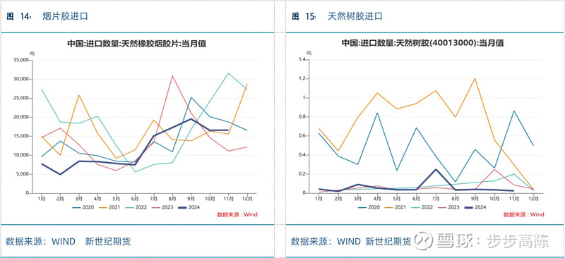 8-9月,胶价出现了一波快速拉升。原因在于,国内外产区频繁的降雨和台风使得新胶产出不如预期,海运费高昂及船期拉长导致海外船货到港较同期偏少,与此同时轮胎出口保持旺盛、国家不断推出汽车以旧换新等利好政策。尤其是9月下旬,包括下调存款准备金率和政策利率、降低存量房贷利率、创设两项结构性货币政策工具等一系列重磅政策组合拳出台,极大刺激了市场信心,进一步扩大了橡胶涨幅,沪胶一度挑战2万整数位。