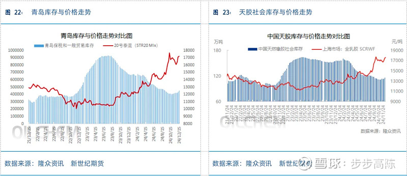 但就2025年全年来看:全球进入降息周期,国内外流动性有望进一步宽松;橡胶的供应将由升转降、需求则有望保持稳中有升的态势,社会库存整体可能长期处于相对低位;同时欧盟的零毁林法案(EUDR)将再度提上议事日程,从而进一步提升橡胶价格水平。预计2025年,天然橡胶将延续强势,完成牛熊转换,如果天气等因素配合,胶价将有较大想象空间。