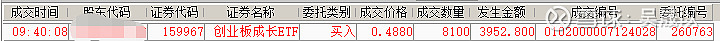 $创业板成长ETF(SZ159967)$ 大网格10%买入一笔,0.488*8100=3952.80元。