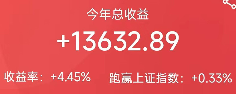 2023年1月3日开户,截止昨日总收益+13632.89元,收益率+4.45%。