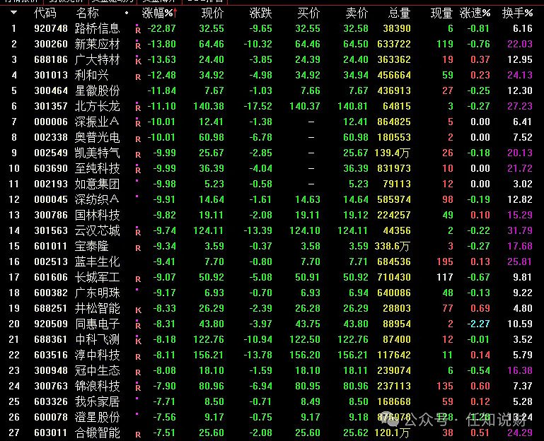 跌幅榜上很多都是小登股。昨天我们就提醒大家,老登的龙头可能是这4个国光连锁、会稽山、好太太、百洋股份。因为昨天的老登股,只有消费形成板块效应。