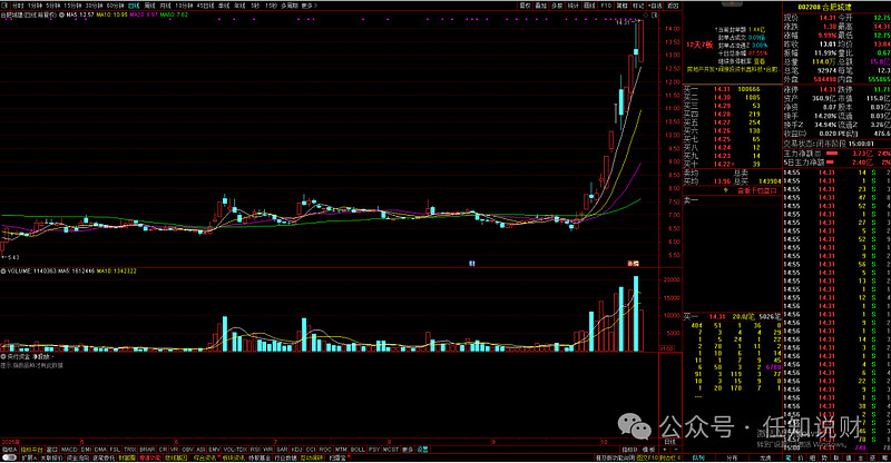 我们前两天给大家说的$合肥城建(SZ002208)$ ,今天又是涨停,这个股运气真是好,科技股涨的时候他是科技,国资牛的时候他还是国资股。最近风口他都搭上车了。我们说过,接近30%的涨幅了,进去的看5日线,不破可以继续跟踪