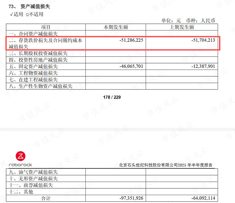 而石头科技今年上半年资产减值损失为9735.19万元。其中因库存积压造成的损失仅仅为5128.62万元(远不及同业公司一半),同比亏损甚至略有缩窄。