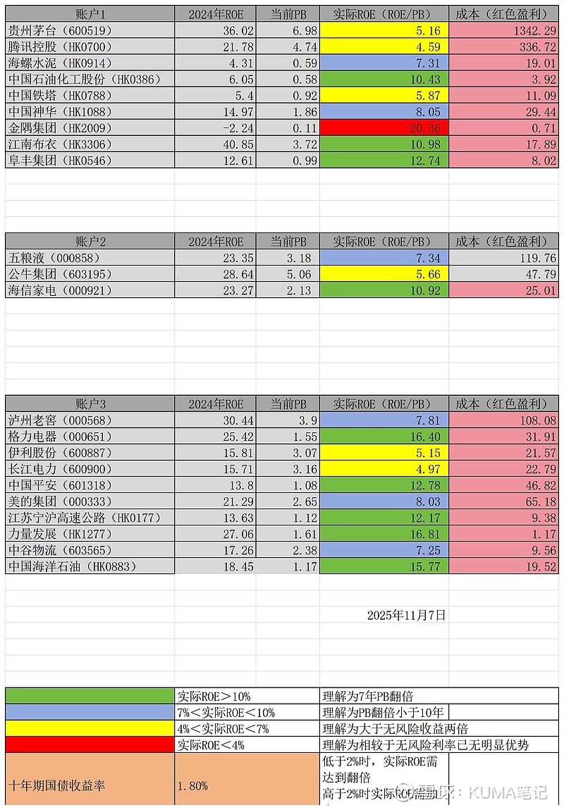 分红是长期持股的基础,为什么说实际ROE(ROE/PB)是衡量股票估值高低的参考?当实际ROE在5%左右时,你能够赚到的钱基本就是那5%×持股年数,也就是说,分红如果是5%左右,那么你最后能赚到的大概就是一个分红除权的钱,伊利股份和长江电力目前大概就是这么个情况。