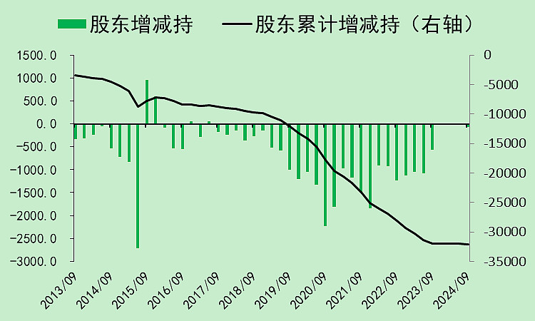 从去年四季度到今年二季度,重要股东减持和增持基本上是抵消的。