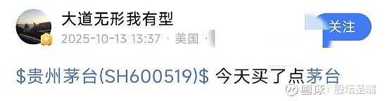 10月13日,知名投资人段永平在社交平台上(ID:大道无形我有型)再次发声,“今天买了点茅台!”