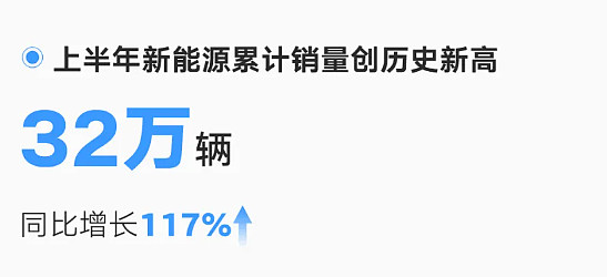 新能源销量创新高:累计销量超32万辆创历史新高,同比劲增约117%,新能源产品占比持续提升。