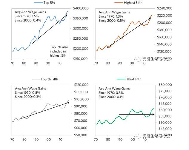 按五分位数划分的家庭真实平均收入(2017USD)