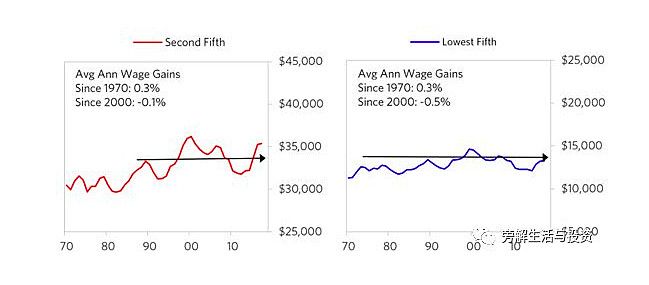 大多数底层60%的人都很穷。例如,在收入最低的60%人群中,只有约三分之一的人将收入以现金或金融资产的形式存起来。根据美联储最近的一项研究,40%的美国人在紧急情况下很难筹集到400美元。