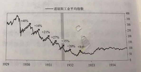 道琼斯指数,1930年年底的低点,160点,反弹到了将近190多点,上涨20%。