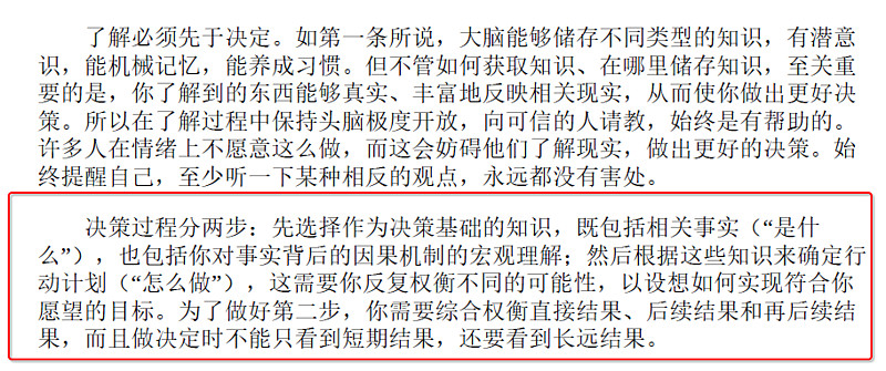 1.要认识到:a.影响好决策的最大危害是有害的情绪。2.决策是一个两步流程:先了解后决定。