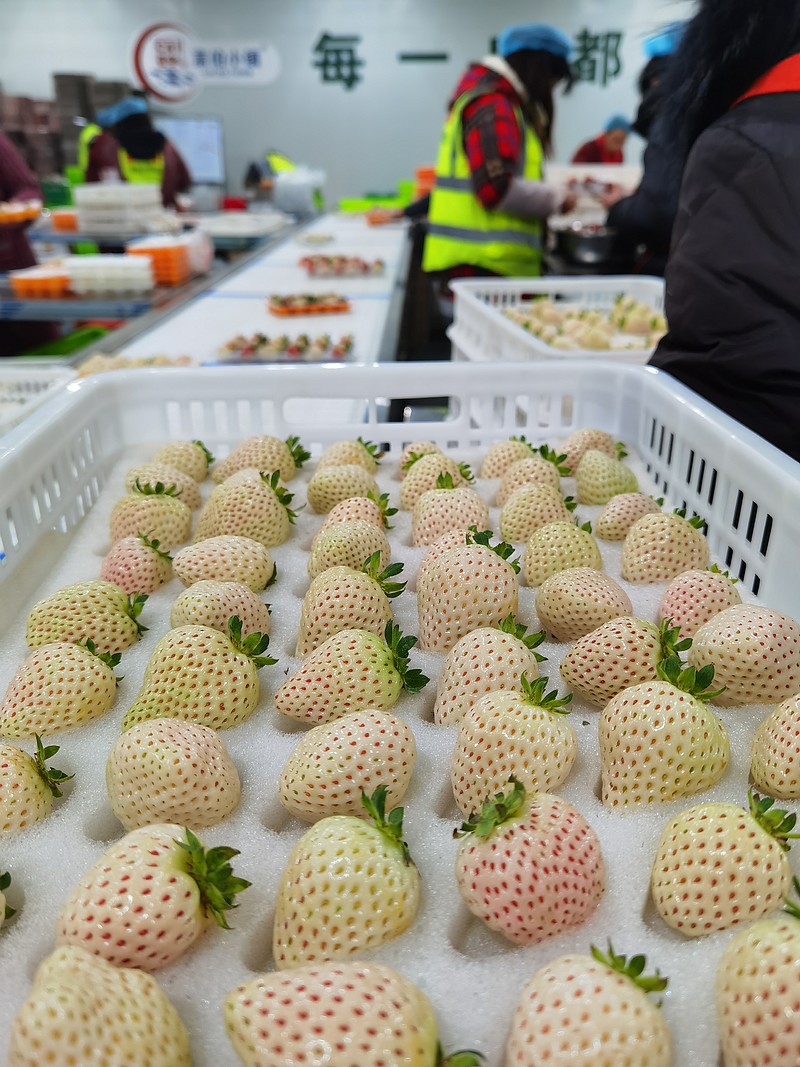 辛杰表示,除了往年的红颜单一品种外,今年理塘还引进了新的品种“粉玉”,不仅外观漂亮,口感更香甜。同时,合作伙伴还在成都建立了草莓分选大仓,使得草莓的运输链路进一步提升,不仅品质更好,货源也更加稳定,还有机会实现了全年供应。