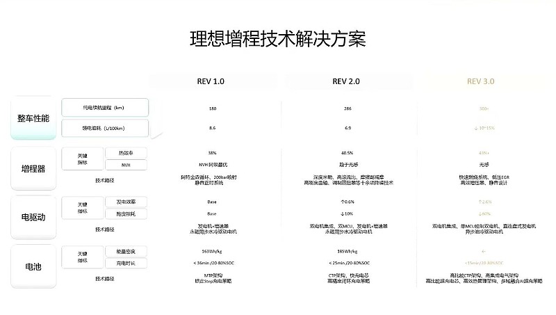 今年3月底,理想整车动力副总裁刘立国做过一次公开分享,关于理想新一代增程3.0动力系统的设计指标。可能是考虑到对现车销售的影响,这次分享的相关内容在网上流传不多。大致概括一下刘总分享的核心指标: