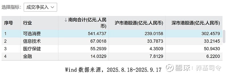 素有“聪明资金”称号的南向资金,今年以来一直持续流入港股市场。Wind数据显示,截至9月17日,南向资金今年以来净买入额达1.09万亿港元,超过2024年全年净买入额。而从行业流向来看,南向资金近一个月净买入额排名前三的分别是可选消费、信息技术和医疗保健,其中可选消费和信息技术都是港股科技主要覆盖的行业,这也说明资金对港股科技板块是非常看好的。