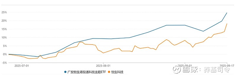 港股科技主题相关ETF的表现同样不错。司令以今年6月26日成立的港股通科技ETF(159262)为例,截至9月17日,该ETF基金份额增长155%,基金规模达到42.69亿元,累计上涨24.71%。从下图净值曲线图来看,港股通科技ETF相比恒生科技整体波动更小,收益表现更佳。