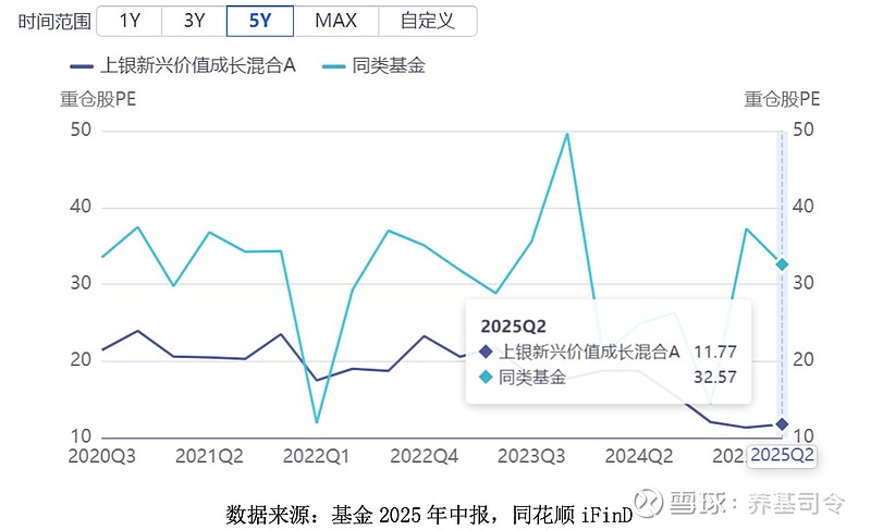 截至2025年上半年,重仓股平均PE只有11.77倍,估值处于较低位置。