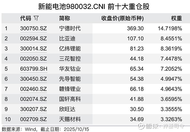 在几只电池主题指数中,宁德时代、比亚迪,在新能电池(980032)中的权重占比较高,前面提到的三花智控占比7.45%。实际上,根据东吴证券的研报,新能电池(980032)指数中,:固态电池含量超过65%,是目前全市场固态电池含量靠前的指数,且龙头集聚效应突出,前十大重仓股合计权重约66%。通常来看,龙头股权重(高)占比一定程度上决定了指数弹性。