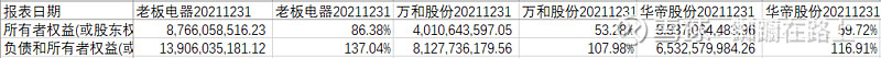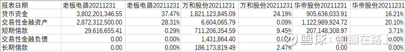 流动性方面老板电器最好,华帝次之,万和一方面手上现金很多,一方面有较高的长短期借款,查2022年半年报,短期借款已经减少到2亿,货币资产同步减少约4亿,长期借款变化不大,加起来长短期借款还有4亿。老板2022年半年报显示基本没有变化,华帝资金方面总数变化不大,长短期借款各增加5千万。