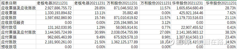 应付都高于应收,万和的情况最好,到2022年中,万和应收没有大的变化,的、应付减少了5亿,主要系本期应付国内材料款、保税物料款减少及采购结算加快影响所 致。