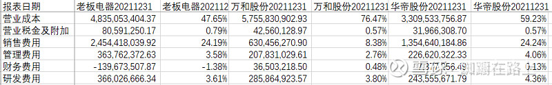 其他两家的三费差距不大,老板的营业成本好看很多。