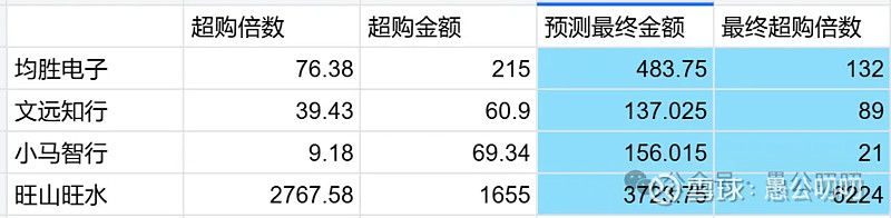 先说一下中签率预测吧,最近大家都喜欢最后一刻冲,导致申购金额最后变动很大,我们先看目前四只的超购信息: