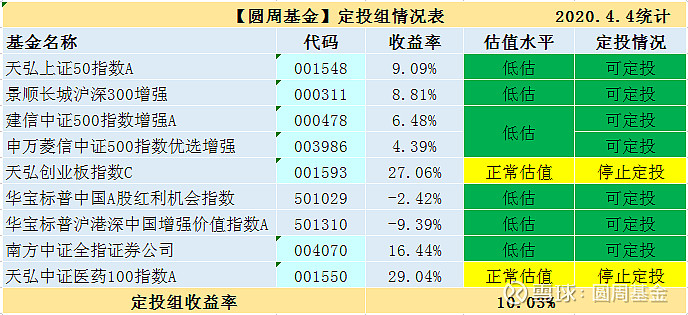 4、后面4支指数基金:不设定低估阈值,参照估值状态进行等额定投。