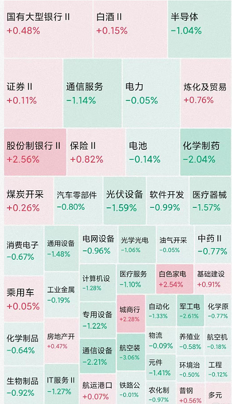 科创50再创历史新低,半导体、汽车、医疗、酒店餐饮、医药概念等纷纷回调,白酒。新能源有所止跌企稳迹象,银行股强势反转,房地产展开反攻。