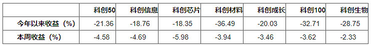 过去一周(9月2日-9月6日)科创板向下调整,科创50指数下跌4.58%,科创板各主要指数均明显下跌。