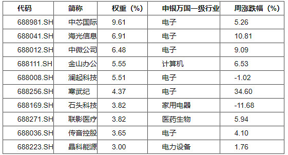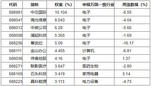 科创50前十权重股表现情况
