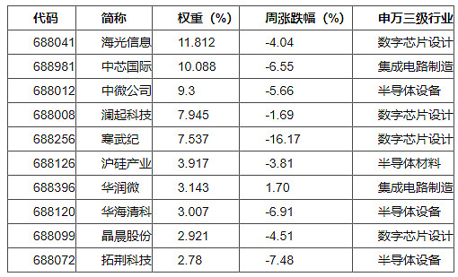科创芯片前十权重股表现情况