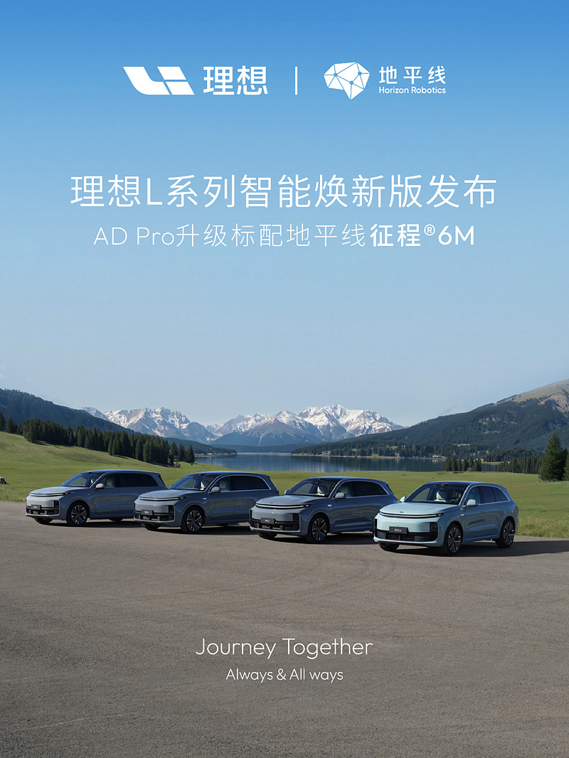 5月8日,理想L系列智能焕新版正式发布,旗下理想L9、L8、L7、L6四款车型全系迎来辅助驾驶硬件升级:AD Pro(辅助驾驶)标配搭载地平线新一代征程6M!