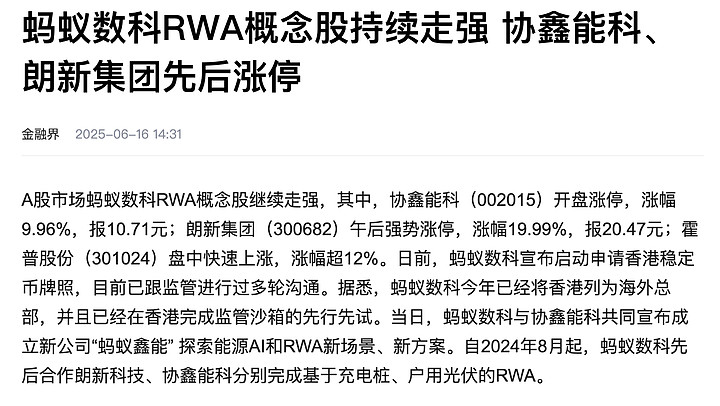 蚂蚁数科为协鑫能科提供的技术支持,涵盖资产确权、代币发行、智能合约结算等全流程。特别是在香港监管沙箱的先行先试,确保了整个交易链条符合合规要求。行业人士指出,新能源 RWA 的落地,不仅能提升绿电资产的流动性,还能通过市场定价机制优化能源资源配置,对 “双碳” 目标的实现具有长期推动作用。这也是协鑫能科被资金追捧的深层逻辑 —— 其业务创新已超越传统电力企业范畴,成为能源数字化的标杆。