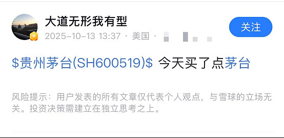 2025年10月13日,知名投资人段永平在社交平台上(ID:大道无形我有型)公开发声,宣布“今天买了点茅台!”这一举动迅速引发市场关注。
